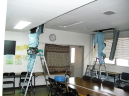 | 今年の夏に壊れた総合Gの空調機器の取り替え工事を行いました。 | |