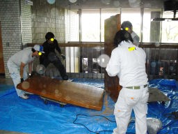| 動線やドア等主要なところはには、ブルーシートを敷きました。 | |