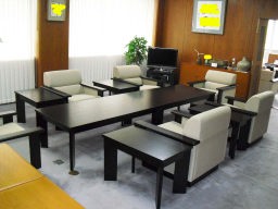 | 市○室配置写真と言いたいのですが、中央テーブルを1つ増設した絵です。 | |