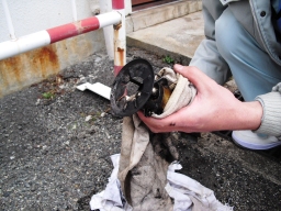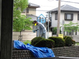 | (清掃後、薬剤散布)この後、法転地駐車場の横の住宅で火災がありました。 |