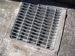 | ポイ捨て禁止のためグレーチングの下に金属ネットを張ってもらいました。 | |
