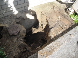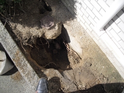 | もともと、何かの管があったような感じでしたので、何らかの理由で土が浸食されて、陥没してような感じです。早急にモルタルで埋めてもらい今は、完璧な状態になっています。。。。。。。。。。。。。。。。。 | |