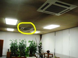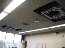 | 天カセット式でしたが、既存の分が、かなりの長方形タイプだったため、天井パネルの一部を専用パネルで埋めてもらいました。 | |