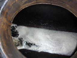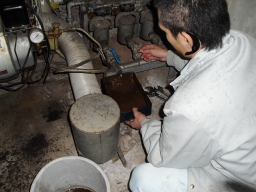 | 水が混じっているのでしょうか・・タンクから?6月くらいにタンクの検尺時の量が100Lくらい増えていたから?原因は分からないが、とにかく重油以外のものが混じってきたのが原因で、着火しなくなりました。。 | |